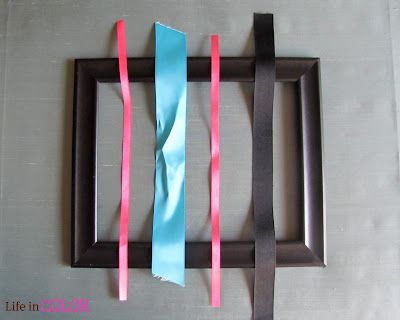 _Now, take your ribbon and cut it to the length of the frame. You can have as many or little ribbons you want, just keep in mind you'll need space between them for the bows/flowers to fit.